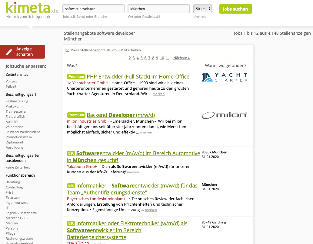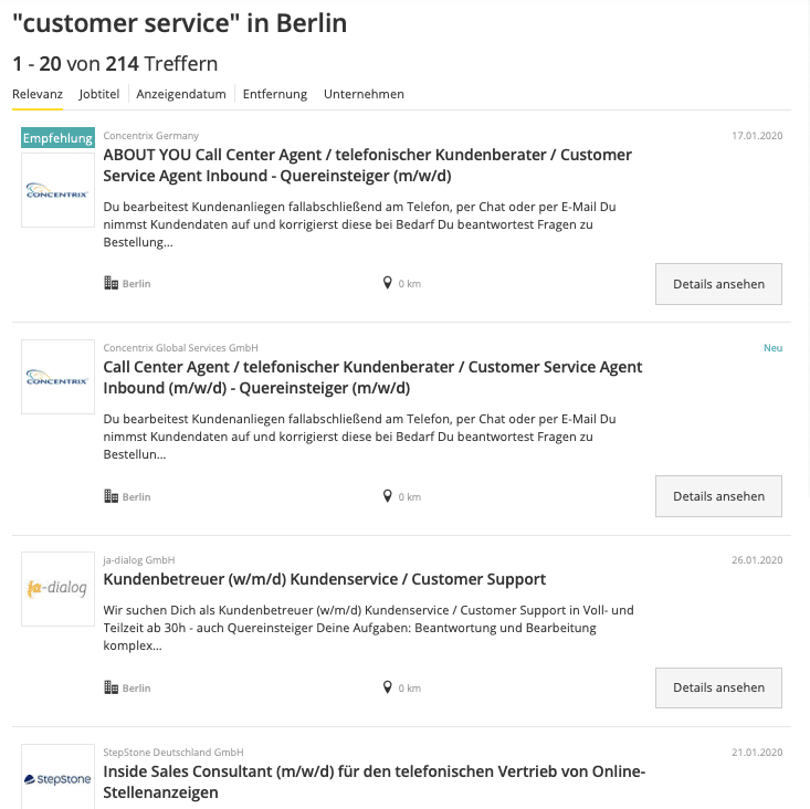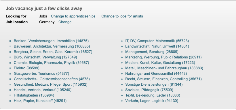 This one is the odd-man-out of the top 10 job portals in Germany: these are jobs which are actively posted by the job centre, based on companies who have informed them of their open vacancies.