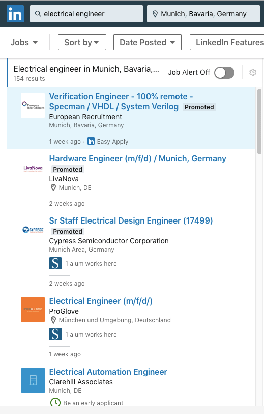 Other than filtering by job title and location, you’re also able to sort based on relevance of the position (based on the keywords you searched for) and date the position was advertised. There’s no option unfortunately to search by language of the job ad.