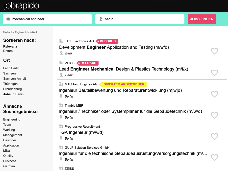 Another one worth a look, but again, unlikely to offer a hugely unique offering versus the major players. One cool feature with Stellenanzeigen.de, however, is their option to filter by popular companies. Great if you’ve specifically got your eye on a particular company who you’d love to work for.